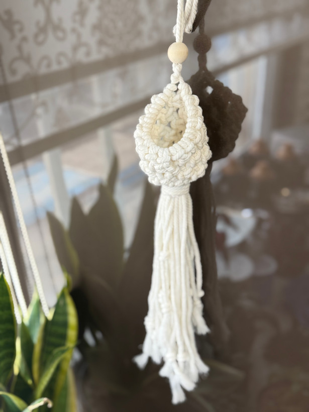 کار مکرومه بافت شده با نخ پنبه۴میل رنگ سفید