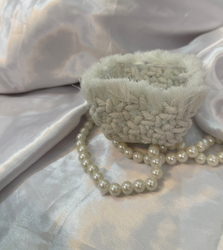 پیاله طلقی که اطراف کار مکرومه بافته شده