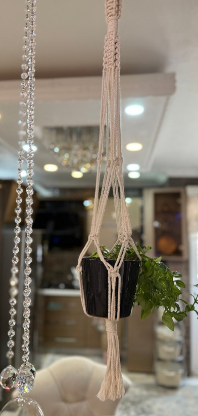 آویزگلدان جنس مکرومه نخ پنبه ۴میل رنگ شیری