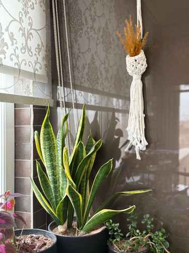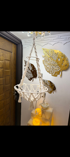 آویزدیواری/آویزدیواری مکرومه مدل خمره ای سفیدرنگ